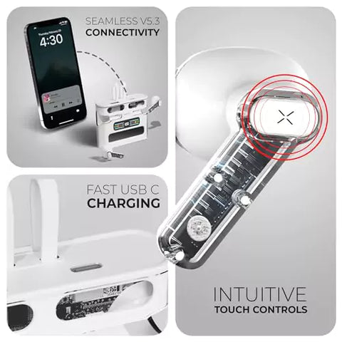 Transparent Design- A glimpse into the future. Clearpods feature a futuristic transparent design, redefining style and innovation in every way.